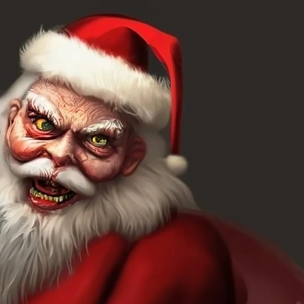 Painting their faces in candy cane camouflage, Santa’s Little Helpers have a final briefing before launching Operation: Going John Wick on Thick Nick. Filling their little bellies with hot cocoa, swirly twirl candy, and amphetamine-laced cinnamon rolls, these direct-action dwarves are hyped up for violence of action. Simultaneously storming three of Santa’s residential compounds, the dwarves soon discover they are dry holes. Eventually they shoot it out with Santa’s sons, Nuday and Yousay Clause until the two are buried under a pile of rubble. Catching up to him three days later, a task force from E.L.F. pull Santa from a spider hole outside one of his ranches slightly north of the North Pole. After a lengthy trial it is decided that Santa will spend the rest of his life in The Hague for crimes against humanity, stemming from his genocide of the Pixie people in the nineties. There he is only fed Weight Watchers meals and is forced to watch episodes of Baywatch.